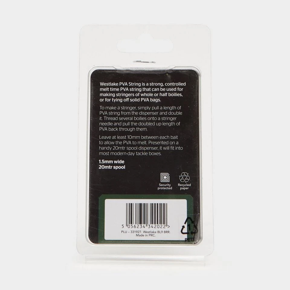Westlake PVA String is a strong controlled melt time PVA string that can be used for making stringers of whole or half boilies, or for tying off solid PVA bags.